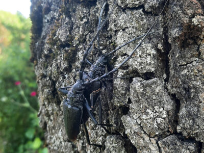En dernière image, exemple d’espèce vulnérable et protégée en France, le Grand Capricorne (Cerambyx cerdo)